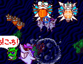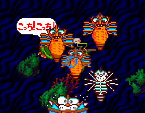 Released in 1992 exclusively for arcades in Japan, Bubble Trouble: Golly Ghost 2 does a few things differently than its predecessor. For one thing, the game takes you away from the haunted house set-up of the original game, and into the dark depths of the ocean with a theme based around sunken treasure. With a change of setting comes a change of enemies, as now the player is shooting fish, eels, seahorses, and other aquatic creatures. However, the original four ghosts from the first game show up as bonus enemies, so it’s not like the subtitle is entirely an artifact.