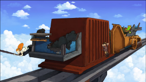 Fans did not agree. There was much outcry over a few dangling plot threads, and anger that Rufus didn’t get the ending they felt he deserved. The series went dormant for three years, until a new sequel called Deponia Doomsday was announced in late February 2016 …and then released five days later. Odd, right? Well, that’s because Deponia Doomsday was less a sequel and more message to those angry fans.