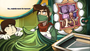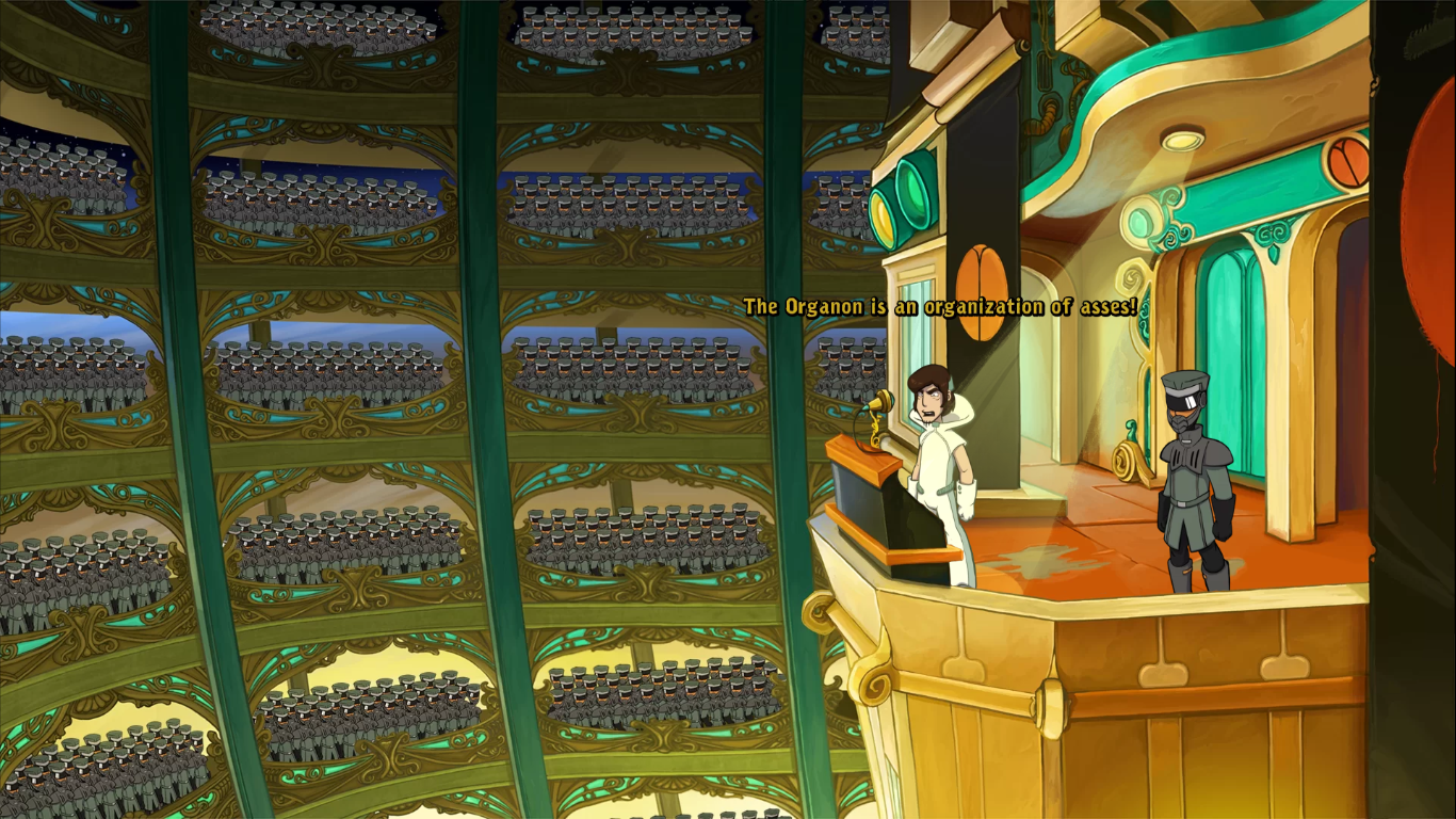 And then the middle segment begins and ruins almost everything before we reach the resistance headquarters and drive towards the fantastic ending. Without giving things away, the middle segment is, by far, the single worst segment of the entire series. The dark humor crosses a few lines that should have never been crossed, including a puzzle where you literally sell two people that ends on an incredibly racist, sexist note in the process. It’s especially baffling due to the game’s themes of finality and redemption, not to mention Rufus’ character arc. It goes on for a long while and mostly acts as build up to the much more interesting stuff in the final act. There are a few solid puzzles in there, like an infiltration bit on an Organon base and convincing a therapist that you’re clinically depressed, but it pails in comparison to the genuinely clever bits at the hotel and the emotionally charged final moments.