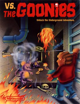 The Goonies was quite popular, and naturally, there were a handful video games made around the time of the movie in the mid- 80s. Four different games, to be precise, which is rather astounding considering that there was only a single movie. Three of these were created by Konami, who had yet to flesh out their soon-to-be-popular Castlevania and Contra franchises, but still possessed some pretty interesting game ideas. Nearly all of the games featured some rendition of Cyndi Lauper’s “Goonies R Good Enough,” which is awesome to hear in old school PSG synth.