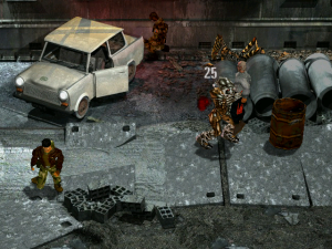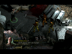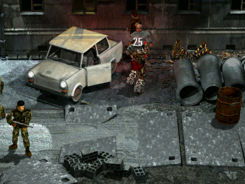 Gorky 17‘s plot is not particularly subtle: you direct a squad of three NATO soldiers, Group 2, arriving in a Polish city devastated by an unknown cause; you are to investigate and bring back any survivors from Group 1. As you quickly find out, most of the population has either been decimated, or transformed into, horrible mutants with a thirst for blood. Your quest for an explanation will eventually lead you, after a few plot twists typical of the military action movie genre and some convoluted sciencey-sounding explanations, to uncover the truth after roughly 12 hours of gameplay. It’s a fun action movie plot, bordering on the silly by the end of it, but exactly what you need for a fun time; there is also an interesting European perspective in there that’s different from other games’ “glory to the USA” bent. The writing is understated, with some great lines and never goes overboard, which makes it very engaging. Areas are explored mostly linearly, though some are more open and have optional/avoidable fights, and there are some non-obvious ways (basic puzzles, one would say) to gain more loot, for the completionists.