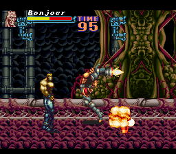You have no lives or continues, so you get sent back to the title screen when you die, but you can continue from the section where you died immediately afterward. The hardest boss in the whole game is actually in the second level, almost entirely thanks to its gimmick of draining your health to restore its own, and the overall challenge feels all over the place.