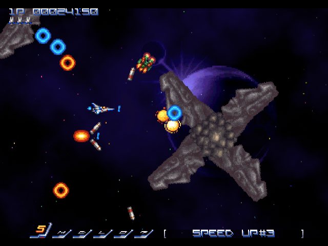 But for all of the complaints regarding its lack of innovation, Gradius Rebirth is still an extremely well-designed game. It manages to provide a better difficulty balance than any of the original arcade games, especially on the lower settings, where extra power orbs are provided after respawning. In the regular arcade mode, you’re allowed infinite credits and can restart the game any time at any checkpoint, much like the PS2 ports of Gradius III and IV and Gradius Galaxies. There’s also a Score Attack mode which challenges you to beat the whole game in one sitting.