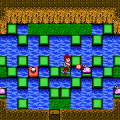 The game itself plays from a top-down perspective, a bit like The Legend of Zelda, but with some extra RPG elements added in. It features a basic leveling system that maxes out at 10 and basic HP and MP stats that increase by 10 each level up until they reach 99. The stages are also in the same vein as The Legend of Zelda in regards to the dungeons, albeit in a much simpler form. Instead of an overworld, you instead pick from five stages on a world map and each stage follows the same basic formula that consists of finding the key to open the door to the boss. Each stage contains various enemies that respawn, the occasional warp point, and a handful of chests that contain a new weapon, accessory and healing items. The final stage also follows the same pattern, but it’s about five stages combined into one and borders on torture/redundancy with a series of mazes and long passageways that take forever to pass. It is at odds with the first five stages.