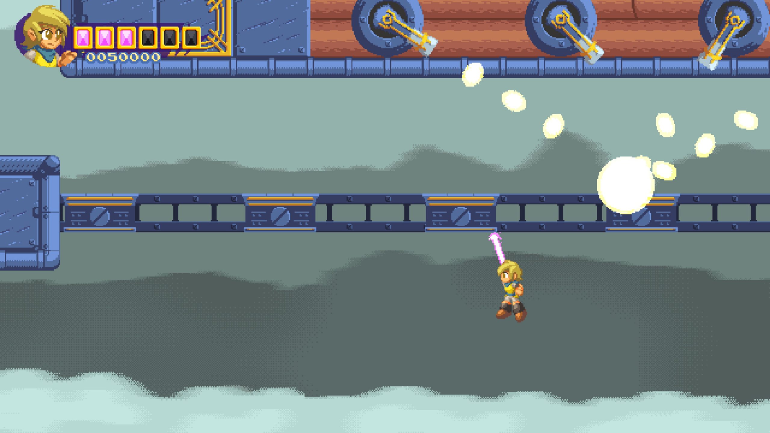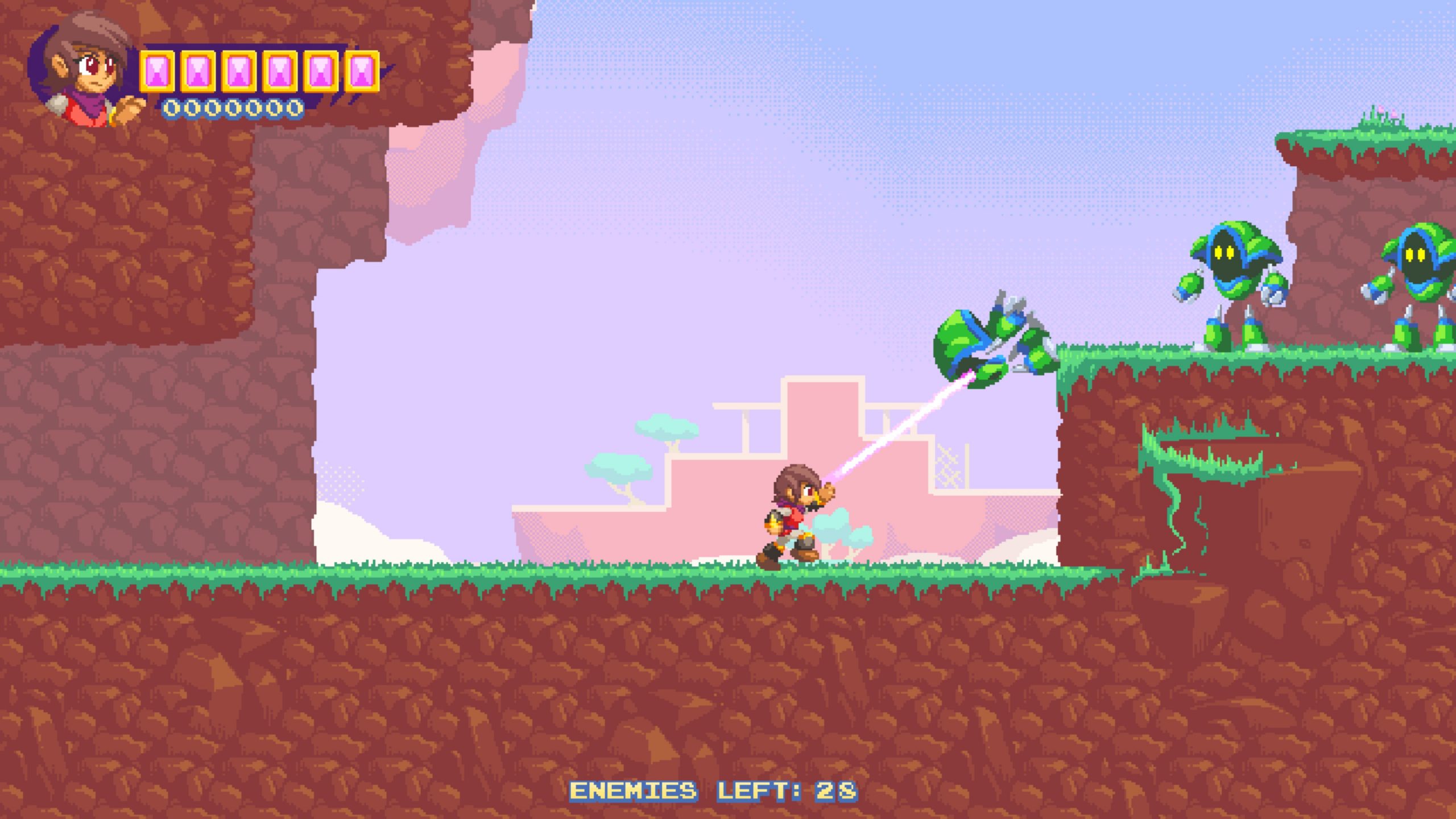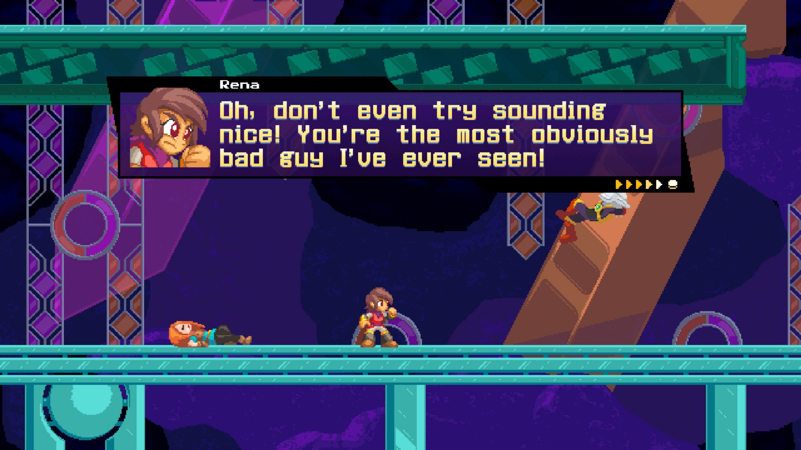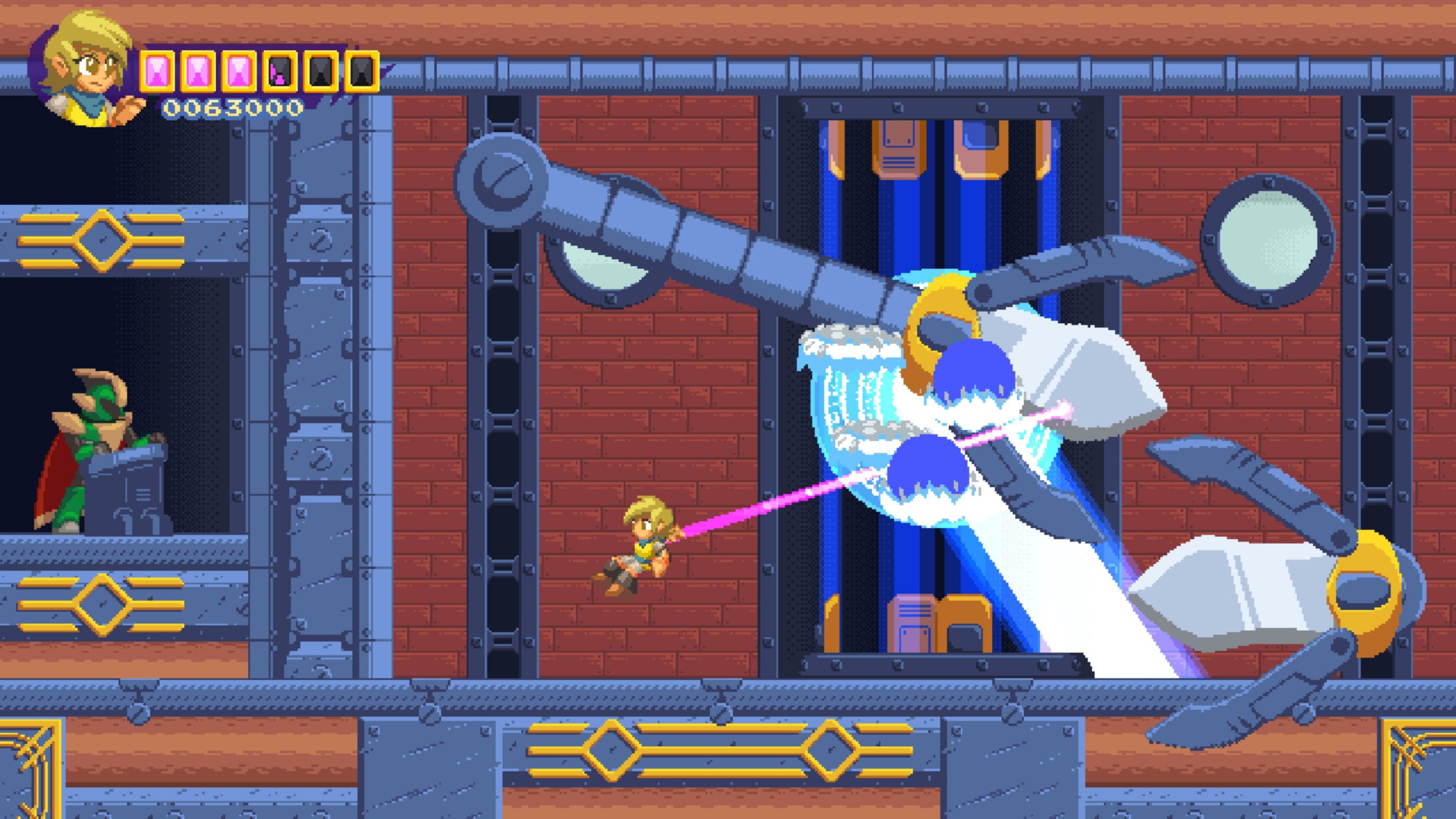 The presentation is very retro in a specific way, with the visual style, sound effects and music instrumentation patterned after the Genesis/Megadrive. It seems fitting that this nearly solo-developed game was published by GalaxyTrail, the makers of Freedom Planet, another game which was Genesis/Megadrive-inspired but had production values more in line with the Sega Saturn. At the same time, this game couldn’t have been done on an actual console from the early 1990s for one simple reason: its analog control. The analog control is what makes the grappling mechanics as precise as they are, and the game just wouldn’t work nearly as well without them.