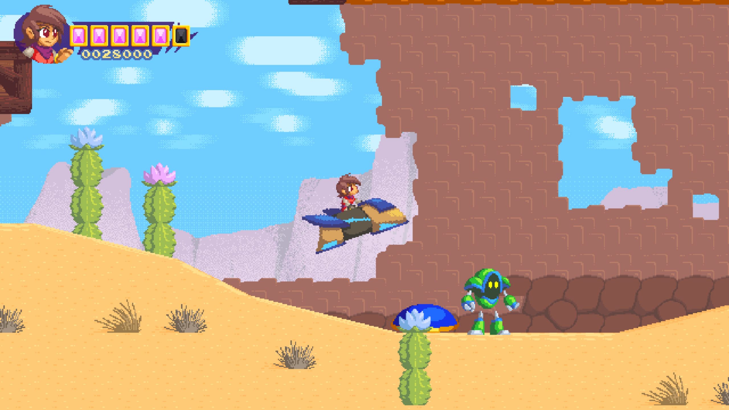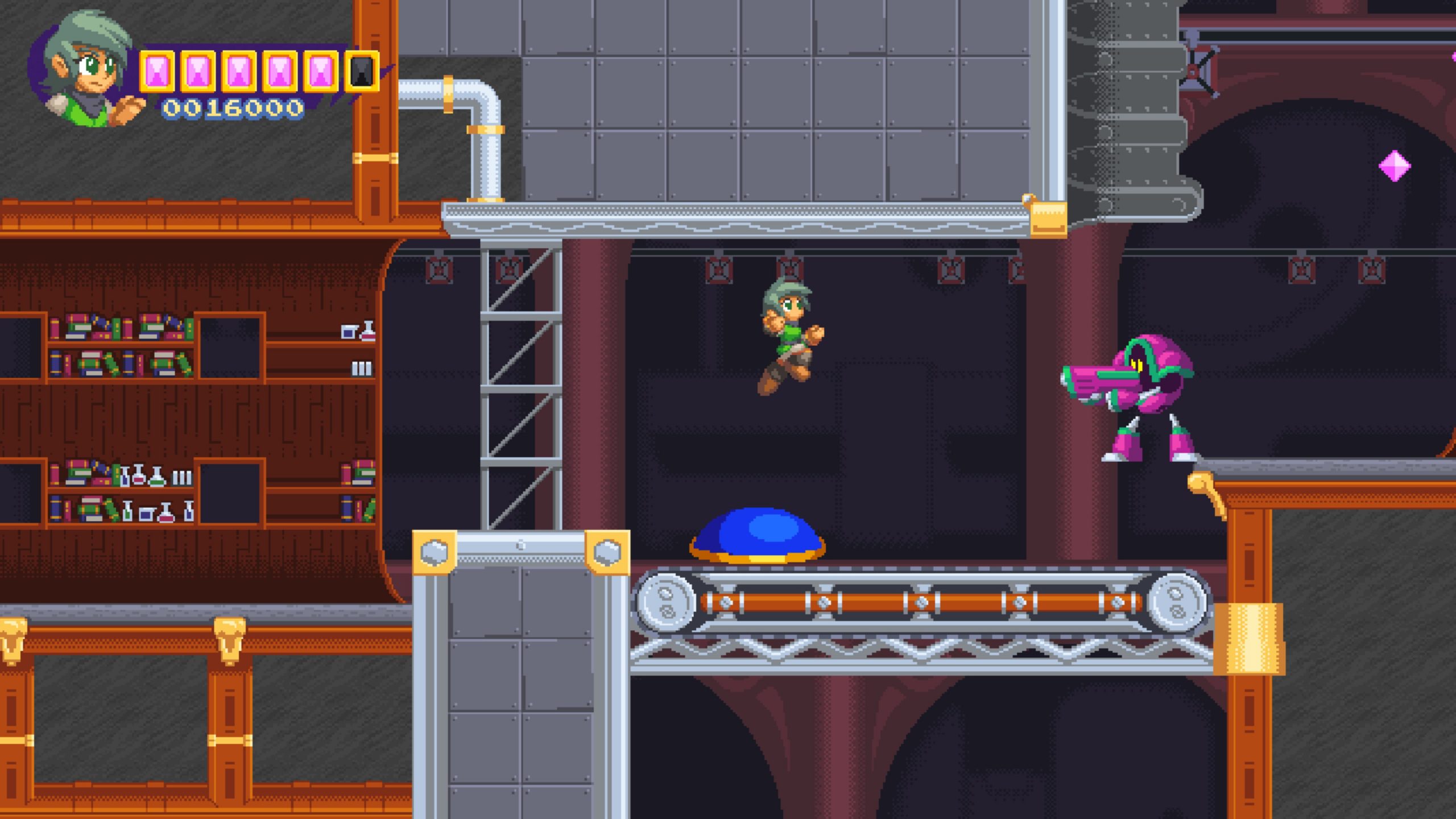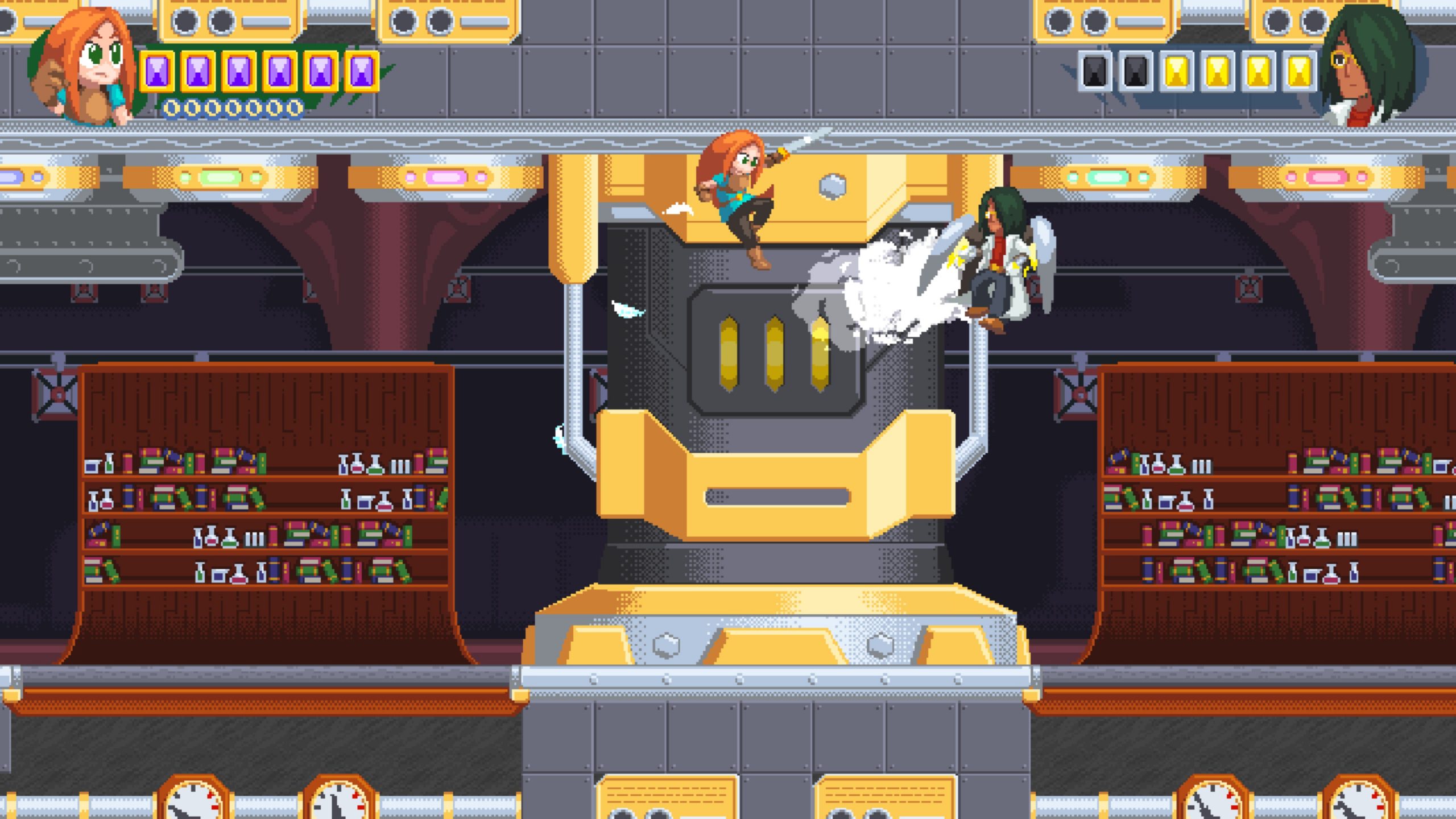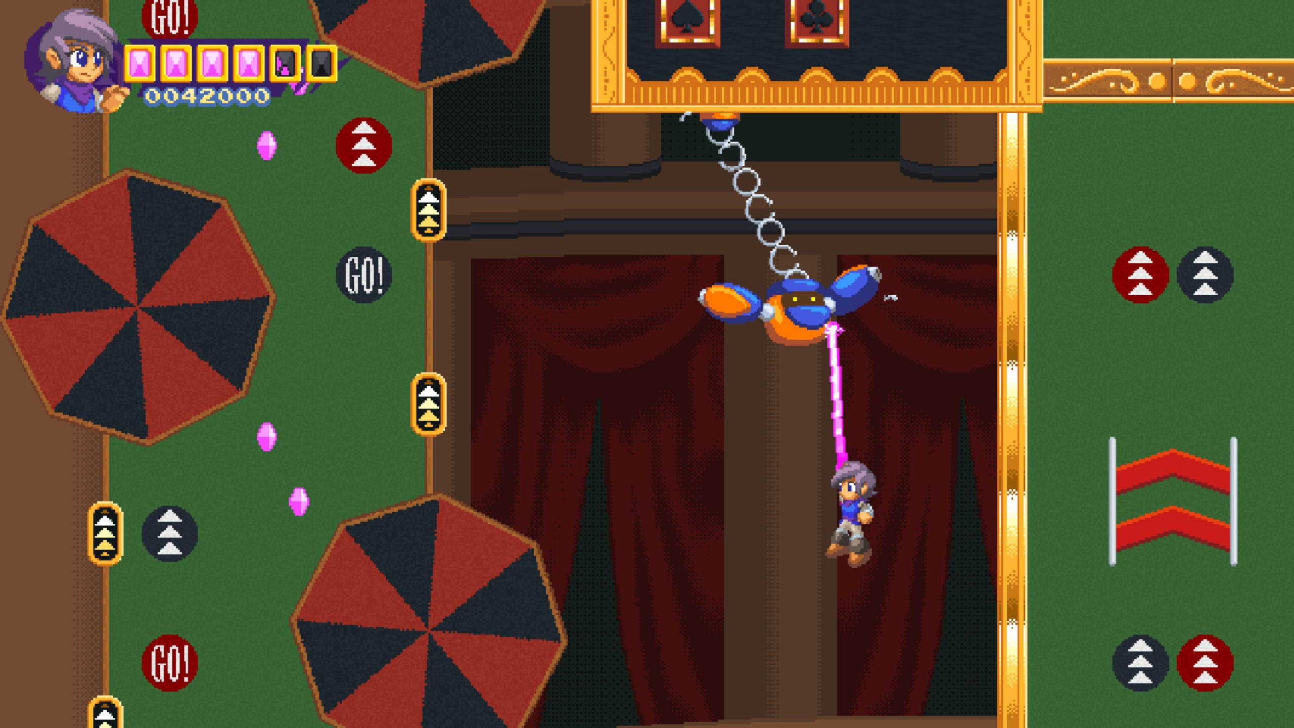 The presentation is very retro in a specific way, with the visual style, sound effects and music instrumentation patterned after the Genesis/Megadrive. It seems fitting that this nearly solo-developed game was published by GalaxyTrail, the makers of Freedom Planet, another game which was Genesis/Megadrive-inspired but had production values more in line with the Sega Saturn. At the same time, this game couldn’t have been done on an actual console from the early 1990s for one simple reason: its analog control. The analog control is what makes the grappling mechanics as precise as they are, and the game just wouldn’t work nearly as well without them.