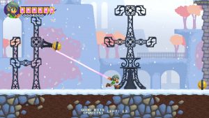 Some levels even have creative twists on their objects. There’s an escort mission which mitigates the frustration many people tend to have with escort missions by making the escort invulnerable, able to both be carried around and thrown like an item, and even fight enemies on his own. Other games with escort missions, take note! Another level which involves weighing down a switch with heavy objects implies players need to use crystals to do so, but it can also be weighed down with shields, spiked balls, and even enemies. Figuring that out saves time hunting for the crystals.