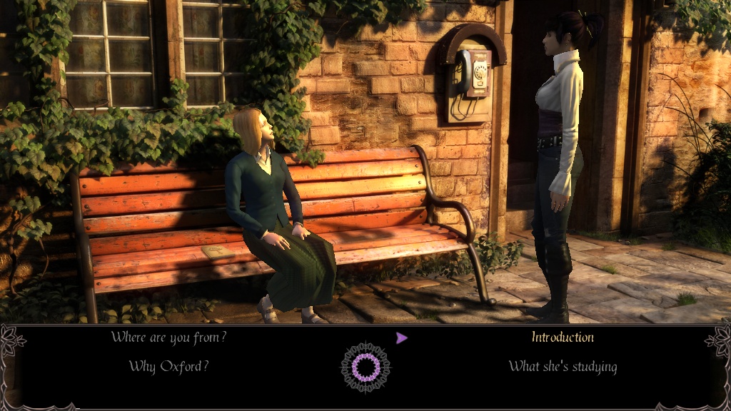 While the solutions to puzzles often lead back to previously visited places, backtracking is never much of a hassle as a map of Oxford allows for fast travel. On the map, names of locations still relevant to the main plot are rendered golden and places finished for the current chapter are grey, narrowing things down. Some names appear in silver/white, which means that there are still bonus points to be gained there even though they don’t serve to advance the main plot anymore. At one point (in chapter 6), it’s possible to sequence-break by using the map, which doesn’t break the game but makes for a weird backwards progression of certain events.