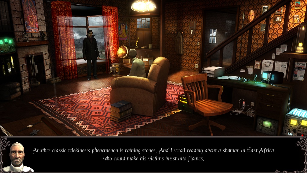 Dr. David Styles takes over as the playable character for the shorter three of the game’s eight chapters, to deal with his inner demons and push forward his experiments. He used to have it all: wealth, popularity, a promising career as the world’s top neurobiologist, and a beautiful wife. But a car accident which happened under mysterious circumstances, three years before the events of the game, ended all that. With his wife Laura dead and the doctor himself disfigured by severe burns, he retired from the university and locked himself up in his mansion, ordering his housekeeper Mrs. Dalton never to change anything in the house that serves his memory of Laura. Convinced that Laura’s mind still remains around him, he has become obsessed with the desire to get through to her. Despite having the reputation of a mad scientist, he decides to continue his former research on the potential of the human mind to directly alter the physical world, in the hope that it will help him to find a way to communicate with Laura.