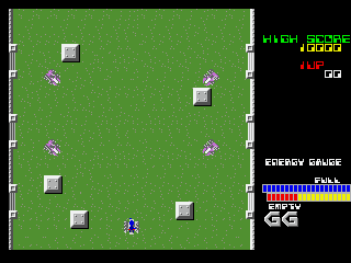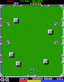 After Xevious, Masanobu Endou programmed a single screen overhead shooter game, where the player takes control of one of those little harmless tanks that where so fun bombing in Xevious. It’s a fight against other tanks in a set of arenas, trying to shoot the enemies as fast as possible and at the same time use the blocks on screen to take cover.