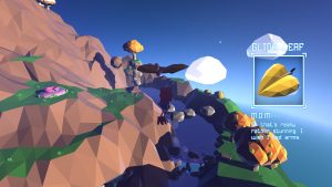This sounds like the recipe for disaster, but this is mitigated by two factors. One: Grow Home provides you with a few ways to make things easier. Small blue crystals are scattered throughout, and for every 10/20 that you collect, you get a small upgrade. These upgrades include a zoomed out camera to help you see things more clearly, and a jetpack with just enough boost to correct a mistake, but no more. You can also pick up flowers that act as a parachute or leaves that you can glide through the air with, though you have to be careful not to lose them. Bouncy leaves run up the side of the Starplant’s stalk, big stems can catapult you across the sky, and there are even teleporters you can use to quickly get to a certain point.