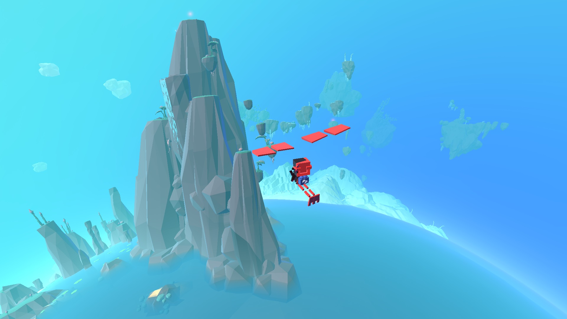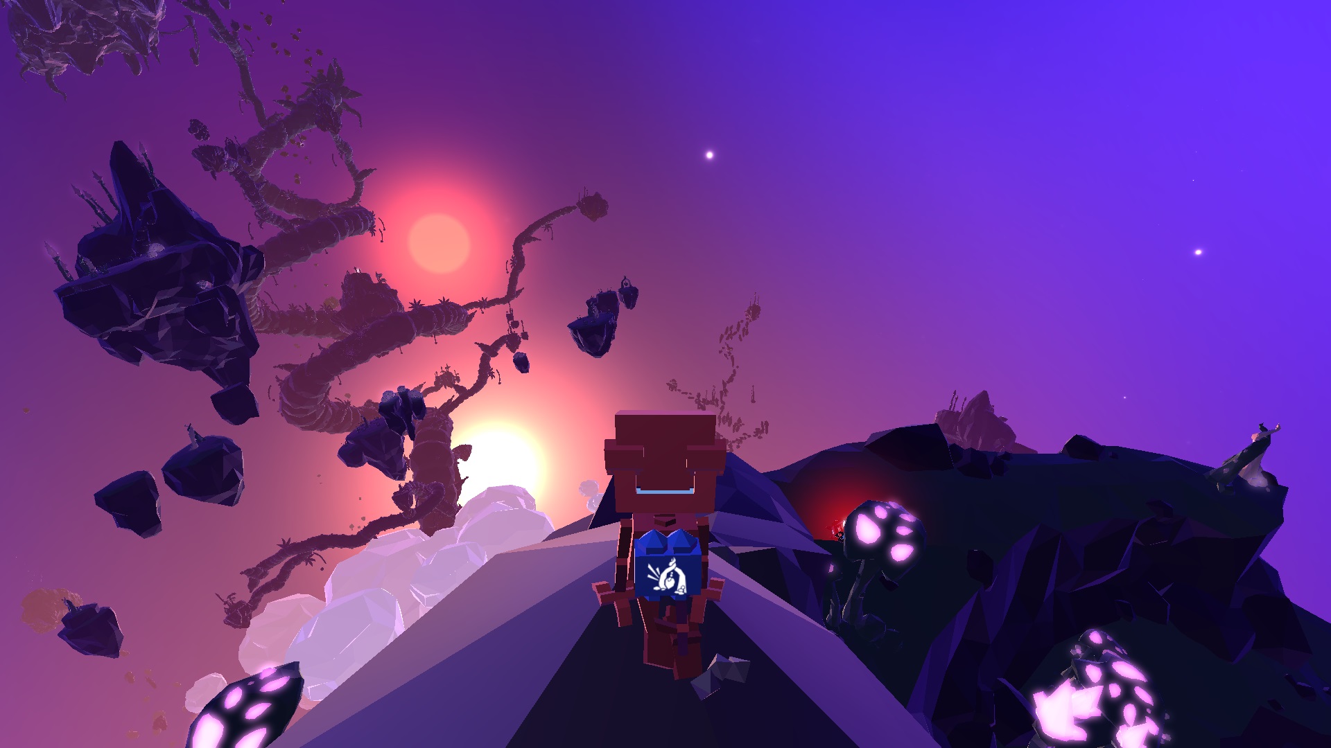 Many of these places look great, sharing the flat-shaded artsyle of the previous game, but something’s missing. Though the game maintains those gorgeous low-polygon visuals and manages to create some truly stunning landscapes, the art direction isn’t as strong. It’s mainly in its use of colour; important objects don’t glow like they did in Grow Home, and there isn’t as much a contrast between the colours and shadows. Aside from said landscapes and the beautiful skybox, the end result is a less visually striking game.