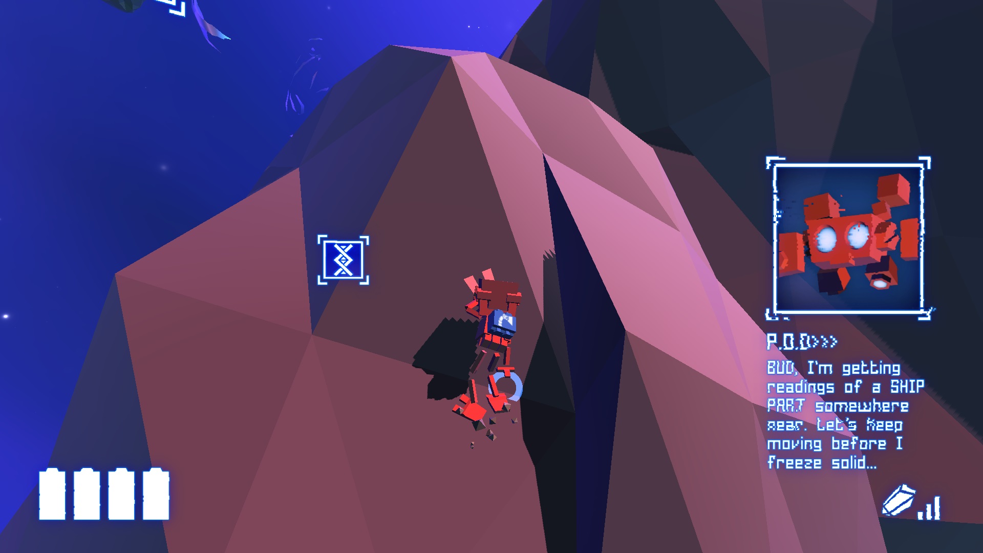 Grow Up has you taking control of B.U.D. once more, having crashed into a small planet after going through a nasty asteroid field. This time, your goal isn’t to grow Starplants, but to find the pieces of your spaceship MOM scattered across the world and put her back together.