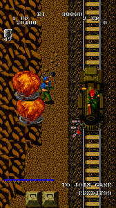 You’ll need any advantage you can get, as GW is rather “arcadey” with its difficulty. You can continue as long as you have the credits to back it up, but it’ll take a lot of money for the average player to get through the entirety of it. It’s quite a short game at only five levels, each one usually about five minutes on average, but you usually get flooded with enemy soldiers who run in, fire a shot or toss a bomb, and then flee afterward. Each of the five stages also ends with a boss fight wherein you must dismantle a vehicle (often with a high-ranking officer who constantly laughs at you piloting them), ranging from helicopters to large tanks and even an armored train which can somehow move back and forth across the rail. These vehicles are only damageable by your grenades which can be hard to aim on moving targets while under pressure of intense fire. Whether or not they’re more difficult than the barrage of enemies is up for debate, but while GW can be beaten if patient, it’ll be a costly endeavor. Even attempting to get as far as you can on a one-credit run is likely to end before the first level’s conclusion. Regardless, at least Guerrilla War allows gamers to play to the end, unlike Ikari Warriors which only allowed on-the-spot continuing in two-player games.