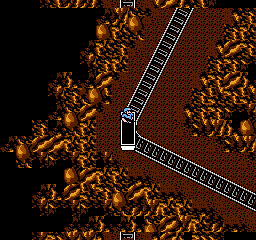 The game starts out mostly the same for the first few levels before it detours into new locales, such as a fight on a large submarine, a dreaded sewer level, and an underground stage with a bizarre bonus segment where you must save prisoners with a lasso while riding a minecart, a scene which exhibits some surprising rotation effects for the NES hardware. There’s enough new content to effectively double the original arcade game’s length into a solid ten levels, yet it doesn’t feel like it’s bloating the game up with wasted stages but rather adding to the experience and making for a meatier overall run-and-gun deathfest. It also features bright graphics that are even more colorful than the arcade version, and the music is actually quite good this time around, featuring energetic tunes made to go with shooting enemy commandos. It couldn’t replicate the rotating joystick independent fire of the arcade, but it works just as well to simply fire in the direction you’re currently running and keeps things overall simpler.