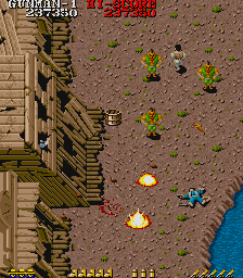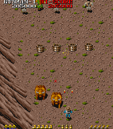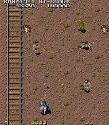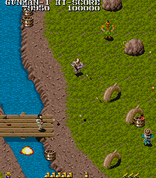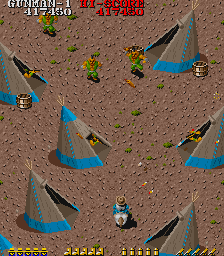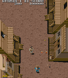 Running on the same hardware as Commando, Gun.Smoke shot its way into Arcades in November 1985. In this game, you take control of a bounty hunter named Billy Bob, who is armed with two pistols, and your task is to track down ten of the most dangerous outlaws in the old west. Along the way, you will have to fight off the common enemies as well, such as gunslingers, demolitionists, snipers, riflemen, and, in the 6th round, Indians.
