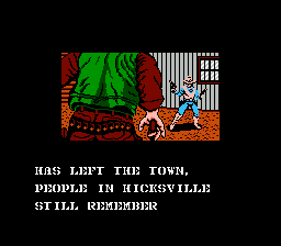 Town of Hicksville boss. Much like his Arcade counterpart Master, he gets on his belly whenever he is hit in order to avoid your shots. However, he now wears a red shirt and blue jeans.