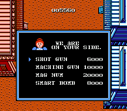 The most noteworthy difference in between the two versions is the music. It becomes evident as soon as you defeat Devil Hawk. Because of the limited memory on the disk cards, the level 1 theme is recycled in levels 4 and 6, the level 1 boss theme is recycled as the boss theme for levels 4 and 6, the level 2 theme is recycled in level 5, and the level 2 boss theme is recycled as the boss theme for level 5. This makes much of the music in the FDS a tad annoying, and inappropriate for much of the on-screen action. Not long after the FDS was released, improvements were made to NES and FC cartridges. This gave Capcom the opportunity to add six new tracks for the game’s soundtrack: “Bandit Bill”, “Death Mountain”, “Ninja” “Cheyenne River” “Fort Wingate” and “Wingate”. These additions make the NES version of Gun.Smoke much better than its FDS counterpart.