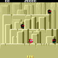 This game was ported to a few home computers, such as the Commodore 64, the Sinclair Spectrum, and the Amstrad CPC. The Commodore 64 version is the only one to follow the structure of the arcade game, but it doesn’t do it very well. It has been shunned as one of the worst C64 games ever, but it’s not that bad. The biggest problem are the awkward controls, as walking left or right shoots automatically, but when shooting straight up, the fire button has to be pressed. Of course the various “special moves” are not in this version, which sets the trend for all other contemporary home ports. All the other computer ports are dealt with in a seperate entry below.