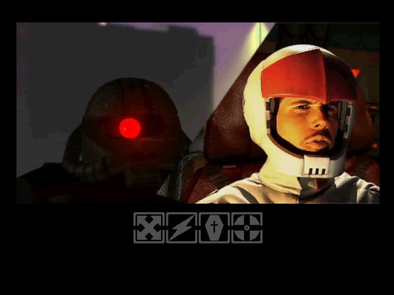 While most of the time is spent watching the video, when prompted, you can perform four different actions – move, fight, defend, and interact, plus you can pick from a few weapons. However, this isn’t just a reaction game, as you’re sometimes given more than one option. For example, when fighting your first enemy mecha, you can fight or defend. Which is the correct one, and which weapon to use? You’ll only know by experimenting, which means you’ll likely die a few times. The computer versions let you save at any time, but it doesn’t offer automatic checkpoints. The PlayStation doesn’t let you save at all, but instead chops the game up into chapters and lets you resume progress with a password. The computer version is much less painless, but in either case, there’s no way to skip any footage, so upon failure you’ll be watching and rewatching the same footage. It’s maddening! The action is occasionally broken up into shooting gallery scenes, and segments where you’re given a 360-degree view and need to look for items or move around. Neither of these are any more compelling.