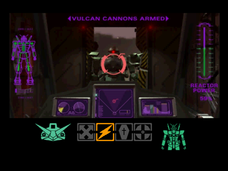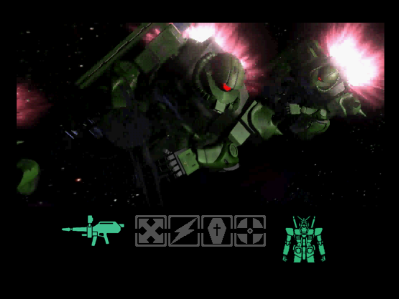 Based on the original Mobile Suit Gundam TV series from 1979, you’re put into the role of an average space colonist who stumbles upon an abandoned Gundam, and are then conscripted by the Earth federation to fight against the separatist forces of Zeon. The game can be beaten in about thirty minutes, so obviously the Gundam storyline is heavily compressed, covering approximately the first ten episodes or so.