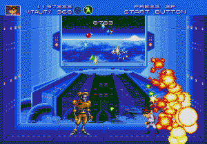 The game was also released as part of the Sega 3D Classics Collection for the 3DS. In addition to some beautiful 3D layering – like all of the other games, some of the best on the platform – there are a few additional options, including the ability to toggle between the fixed and free-aiming modes mid-game (it changes the sprites instantaneously so it looks a little awkward but it absolutely benefits the game), and a “Gunslinger” mode that lets you switch between any of the weapons at any time. There’s also an option to start with 200 life instead of 100.