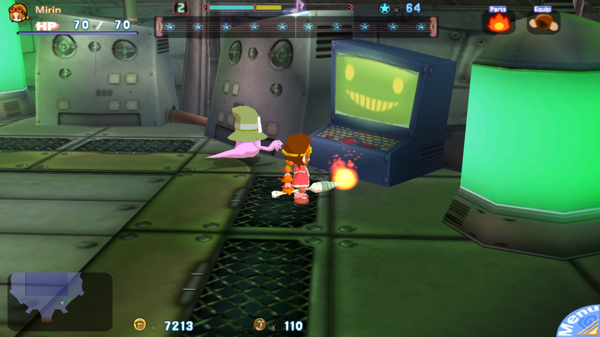Money can be used to purchase healing items, but junk – obtained by destroying objects worn by certain phantoms – will allow you to purchase new equipment. In addition to acting as decorative ornaments, they also have other effects, like detecting all of the treasure chests in the stage or protecting from environmental effects like water. There are a whole ton of these, like goggles, gas masks, and cat ears, in addition to cute outfits for Parin, including swimsuits, maid outfits, school uniforms, and numerous others. Some of these are only obtainable by completing the game on certain difficulty levels, collecting a certain number of medals, or playing the game during certain events, which are dictated by the computer’s/console’s calendar.