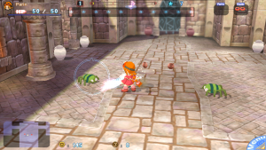 The quality of the level design is mixed, though. The Potato Ruins area, which opens the game, is visually dull in spite of its cute name, boxily constructed with ninety degree angles which make it feel like a 3D game from 1996 instead of 2004. Later stages show more variety, at least, even they are standard fantasy game locales like caves, forests and mountains. The exception to this is the Eggplant Caverns, a bioluminescent cave filled with glowing walls and odd creatures that look like living, walking computer chips.