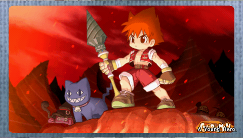 While initially released on the PC, Gurumin was ported in the PSP in 2007, adding the subtitle “A Monstrous Adventure” to the English release. Despite the lower resolution, the visuals make the transfer relatively well, despite some noticeably lower quality textures and degraded shadows. Most of the animation during gameplay also runs at a lower framerate than the action, which makes movement look (though not feel) a little choppier. In order to fit the widescreen aspect ratio, the top and bottom of the screens are cut off, rather than zooming out the action, which not only feels cramped but makes the camera issues during boss fights even worse. The GUI has been substantially simplified, including the deletion of the mini-map and rhythm meter – you still gain critical hits if you match the music, you just don’t get a visual indication anymore. A handful of new costumes have been added too, like a Santa Claus outfit. The PSP version localized into English in 2008 by Mastiff Games. The voice acting is generally decent and captures most of the goofiness of the original – Amber Hood does a great job as Parin – though Japanese voices can be activated with a code.