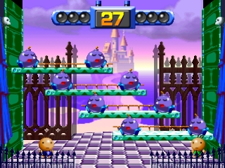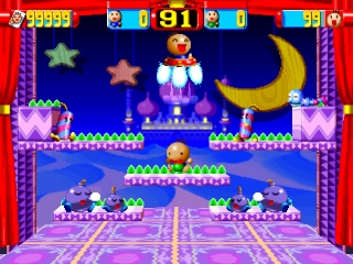 After all these remakes and ports, Irem stepped back into the ring. Their idea of a sequel, Gussun Paradise, is… perplexing. It’s a sequel to Gussun Oyoyo the same way Rainbow Islands is a “sequel” to Bubble Bobble. The gameplay has been completely up-ended, transforming it into pure platforming craziness without any puzzling whatsoever.The premise is different from the usual earthquakes and volcanoes bringing in an ocean of pain. This time, the demon YoYo has created a wacky amusement land purely to torture our main heroes. As always, Emily is there to cheer you on (George is gone entirely from the series at this point.)
