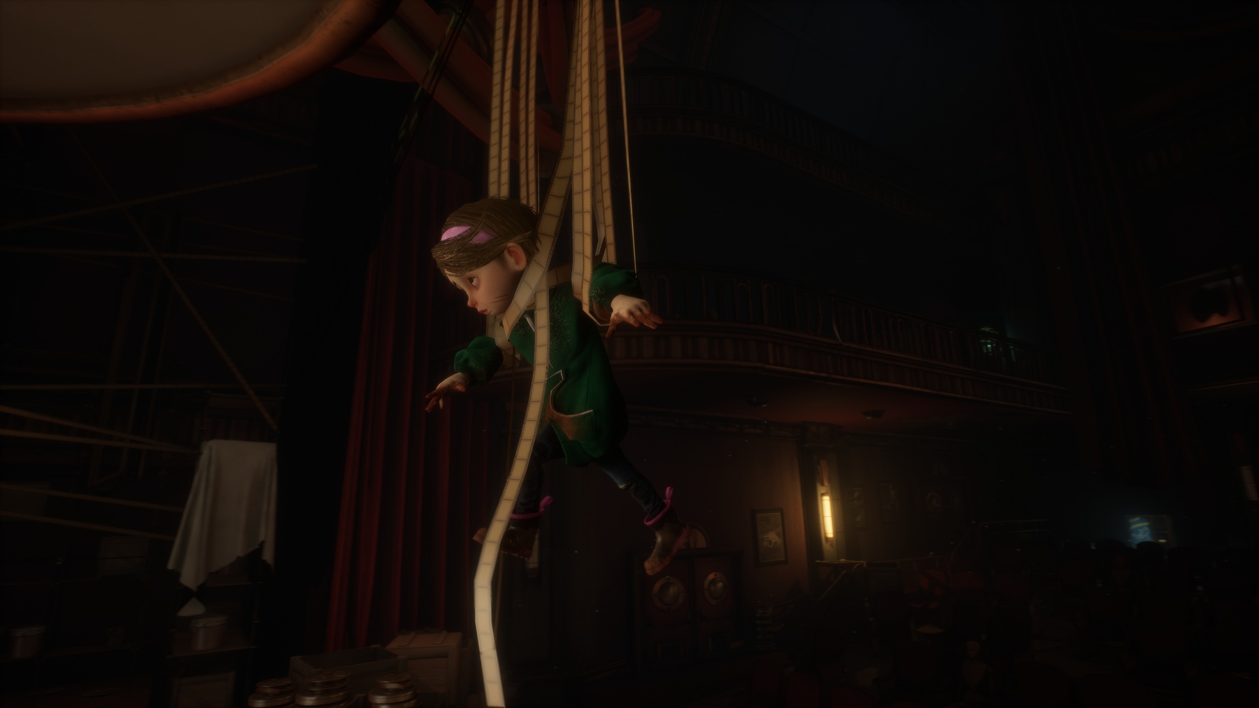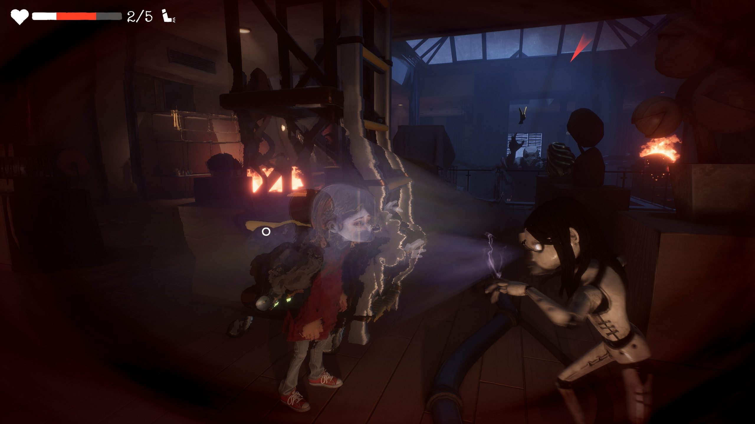 Emily is in the middle of the theater, strung up against her will, while multiple spotlights shine on her, as a movie plays on the screen, showing various sad moments from her life. Such as the apparent death of her grandfather. And what appears to be Emily reaching out to Sally for support while Sally gets annoyed as other kids, portrayed in a monstrous fashion, mock her. This torment, along with Emily’s loud crying and screaming, continues the whole time while you have to disable the spotlights shining on Emily while dodging another spotlight that can drain you of health. This is actually one of the game’s boss fights.