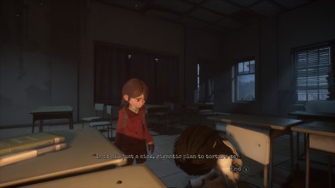 But the bullying imagery really ramps up when you arrive at a theater, and you hear Emily’s harrowing crying and wailing, “Make it stop!” “Leave me alone!” acted out with impressively good and emotive voice acting. This is made even more disturbing by the fact that her cries of sadness and pain continue while you try to figure out how to reach her. And when you do reach the auditorium, what you see is even worse.