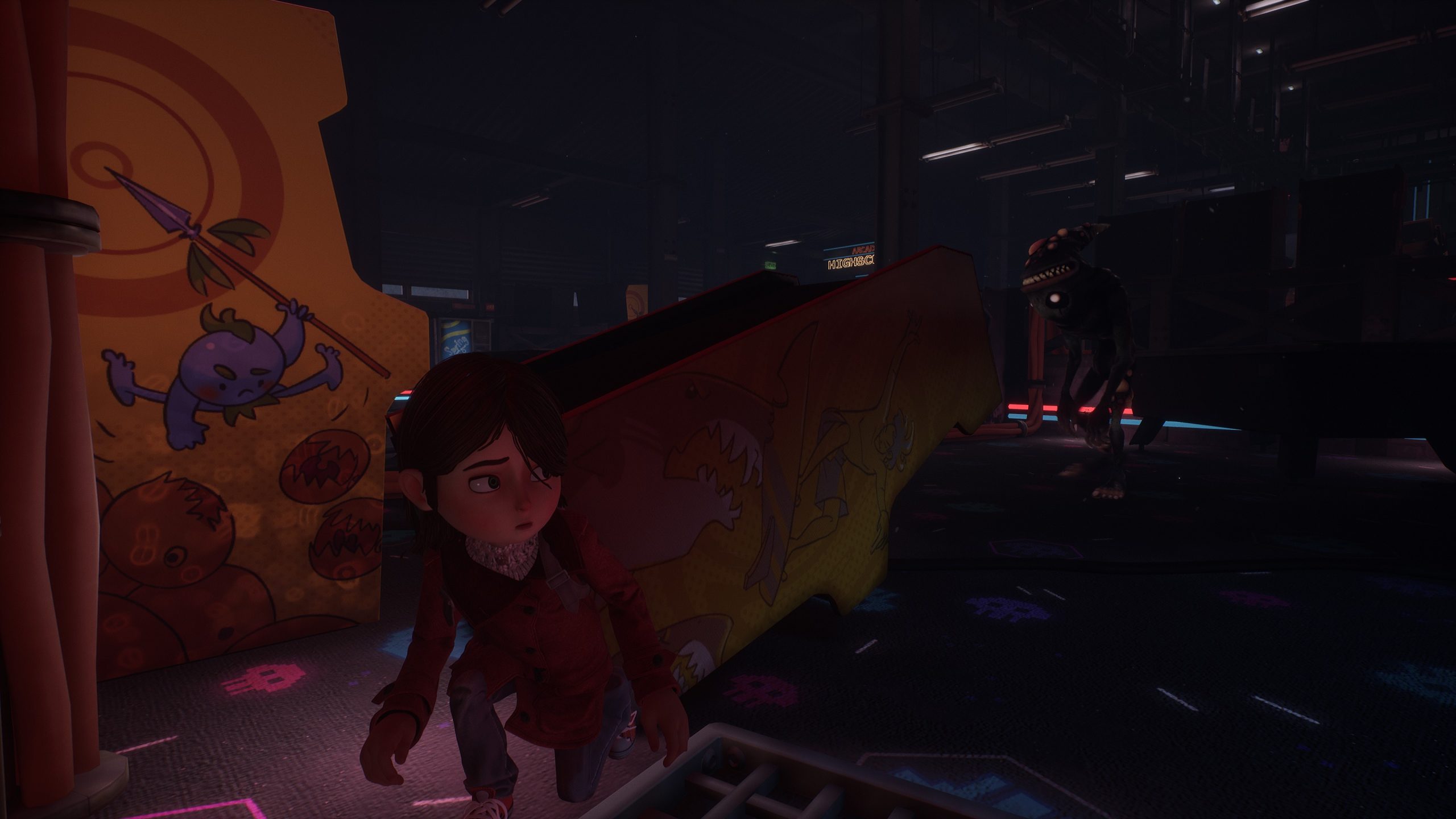 Sally has a lot of personality. She has several nervous idle animations such as tapping on her flashlight. And she has a lot to say. She speaks out loud and gives her thoughts and opinions on things that she sees, both important things happening in the story, or even environmental details. She wonders why her school has a canary for a sports mascot, thinks that having to learn about her town’s mining history in school is stupid, and even speculates if someone is using Emily to bait her into a trap. Sally even sometimes says out loud what the player might be thinking, like complaining, “Come on! Stay down already!” during a boss fight or getting frustrated at the mere existence of invisible monsters.