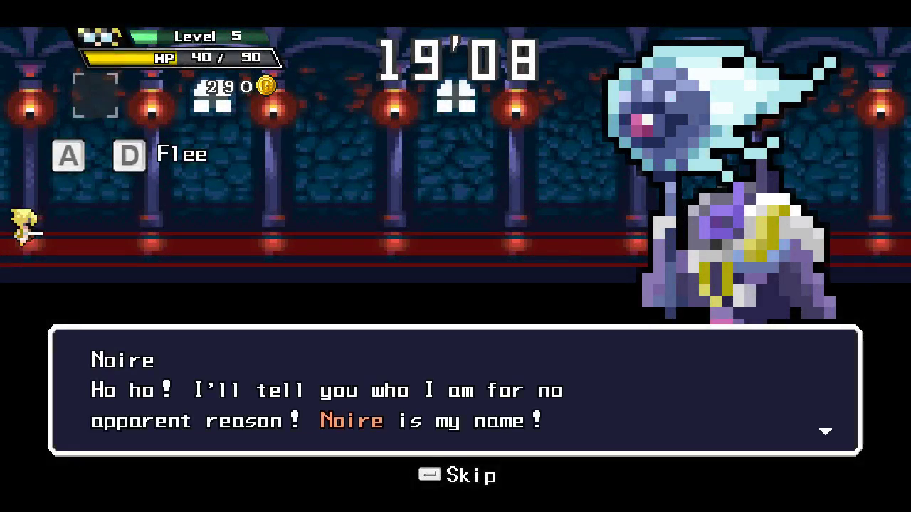 It’s now Goddess Year 300, and a king has brought peace to most of the world, so of course Noire poisons him. Unfortunately for Noire, the King had a “hyper-aggro” daughter, who will stop at nothing to revive her father – just so long as she gets home before her 30 second curfew.