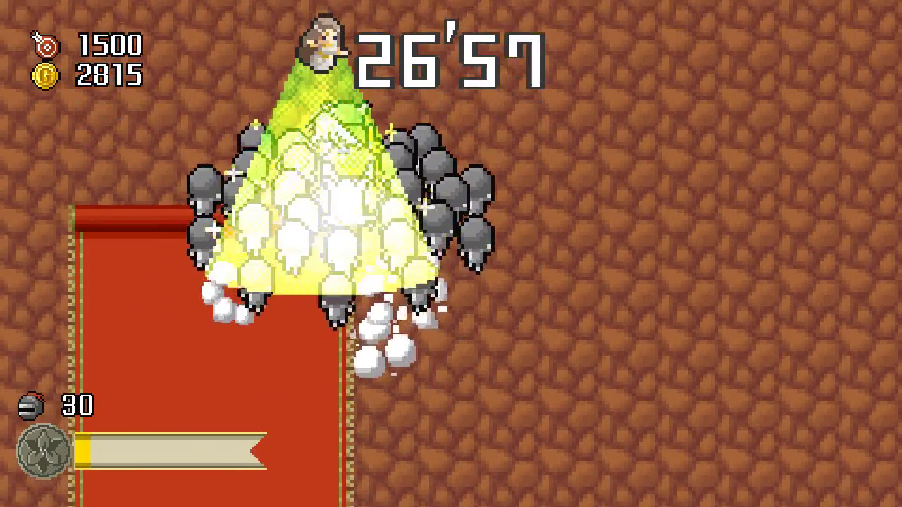 Unlike most scrolling shooters, it’s possible to control how quickly the game scrolls by moving toward or away from the direction of travel. If you are running out of time, there are “Goddess Carpets” which will restore time the longer you stand on them, though a round of Princess 30 is still unlikely to last more than a minute. Princess 30 is fun, but brief.