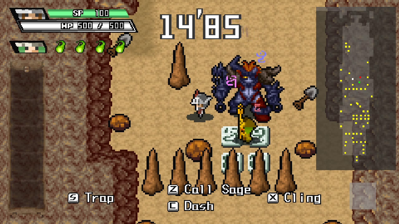 You can direct the Sage with Triangle, or take his hand with X to lead him directly, and can even Dash while holding his hand to hoist him over your head! Sage can only chant his spell while stationary, so you’ll have to find a safe place to hide, preferably on plots of holy ground that will double his casting rate. But you’ll never be able to stay still for long.