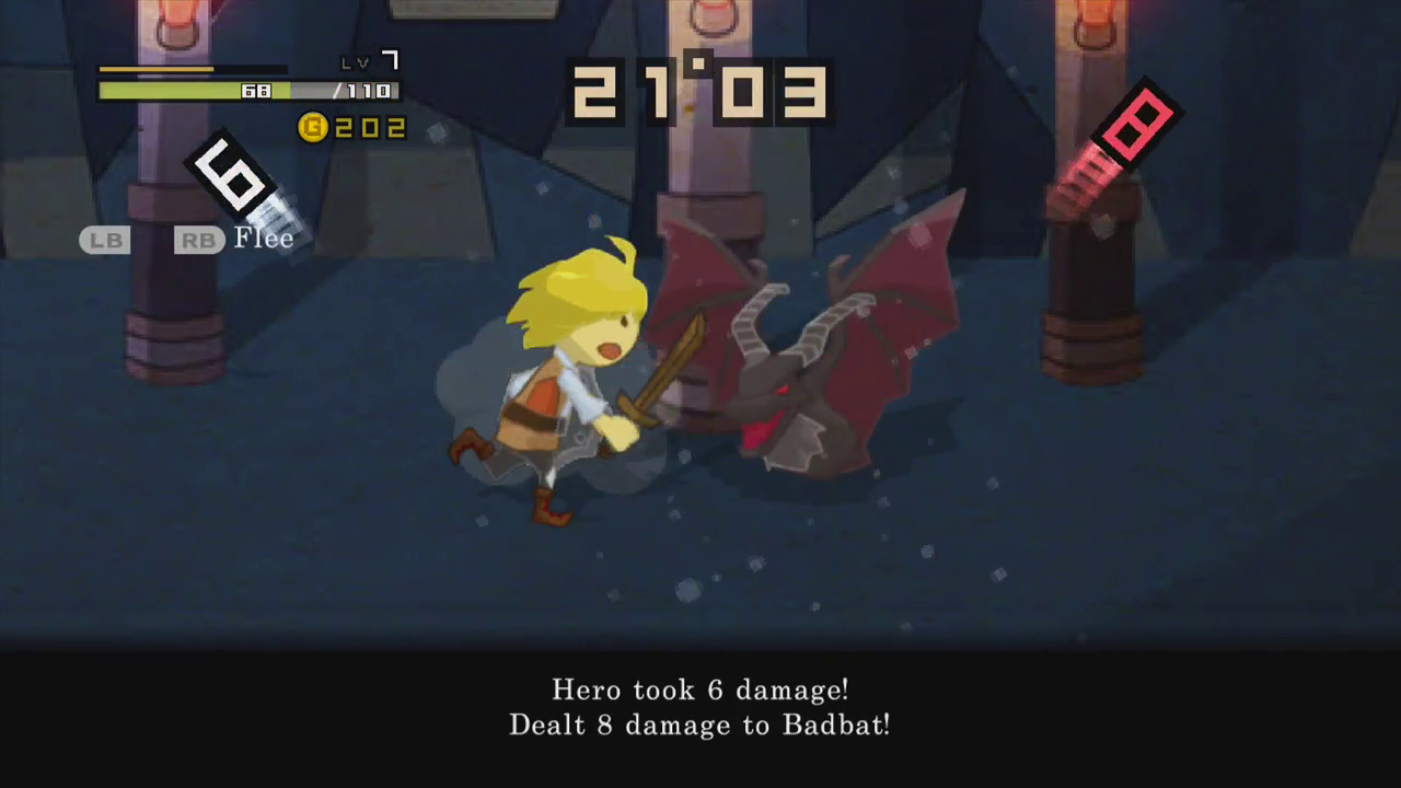 Hero 30 also lacks a certain variety. Playing stage after stage of mini-RPG without interruption gets tiring. This is arguably why Hero 30 is just one of a four-game set. Unfortunately, the porting team for the XBLA removed the alternate game modes, replacing hours of gameplay with a single, extended Hero 30 stage for each campaign. Thankfully, the Steam version includes both the alternate modes and their XBLA replacement, though you access them through the unusual means of changing your graphics mode: Retro graphics gives you the full PSP campaigns, NEO graphics gives you the XBLA stubs.