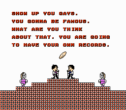 The particulars of moving two characters at once is a problem in and of itself, but the game’s infuriating structure makes it far more devious. Much of the game involves around collecting items. You’re equipped with projectiles – music notes – which will stun an enemy. If you hit them again, they’ll die, but if you run over to their stunned body, you’ll get a random item. Sometimes, anyway. Sometimes, when a fallen enemy spawns an ugly female fan or a black person (yikes), trying to “collect” them will kill you. If you dawdle, the foe can also wake up without warning and also kill you. Additionally, both of your characters need to be on the same level to get an item to spawn, so if they’ve ended up on different parts of the screen, it won’t work. Furthermore, projectiles will fall from the sky, which won’t directly harm you, but will take away both the level objective item as well as depleting your record supply.