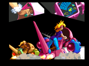 Harmful Park was only released on the PlayStation in Japan by a small company named Sky Think Systems. It’s your standard 2D side-scrolling shooter, except set in a bizarre amusement park. As the (relatively lengthy) introduction tells you, an evil scientist has taken over Heartful Park and is using it for nefarious purposes. One of his colleagues aims to stop him, but she’s old to do it herself. So, she commands her two slacker daughters to save the day, equipping them with some kind of flying motorcycle armed to the teeth with strange weapons.