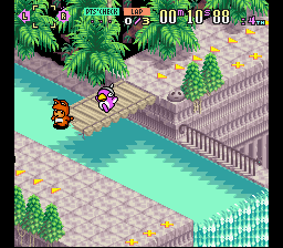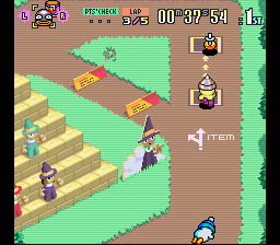 Despite the cutesy premise and pastel graphics, winning is not an easy task: the opponents are merciless, almost never make mistakes and often come out on top by using the items provided by squares on the ground. The player must learn strengths and weaknesses of the characters and the conformation of the various tracks (sometimes quite complex) to be victorious.
