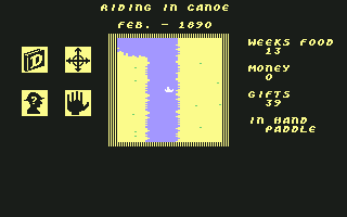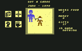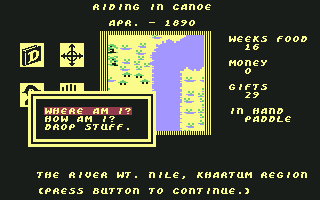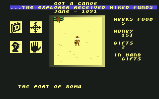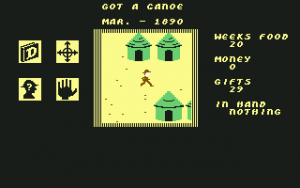 The Commodore 64 exclusive Heart of Africa looks superficially like Seven Cities of Gold. The game is kind of a sequel to the previous title, although it’s set 400 years later and on a different continent. The gameplay is a mixture of new and familiar – it often feels similar but it’s obvious that it’s not just a reskin of Seven Cities.
