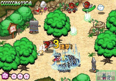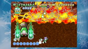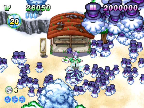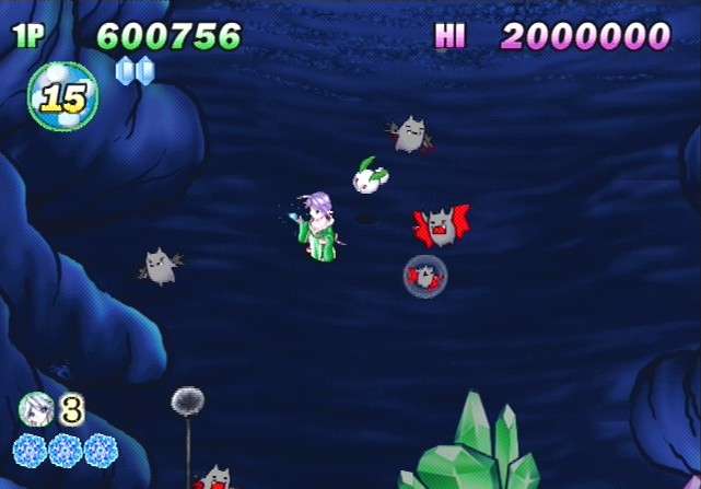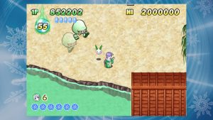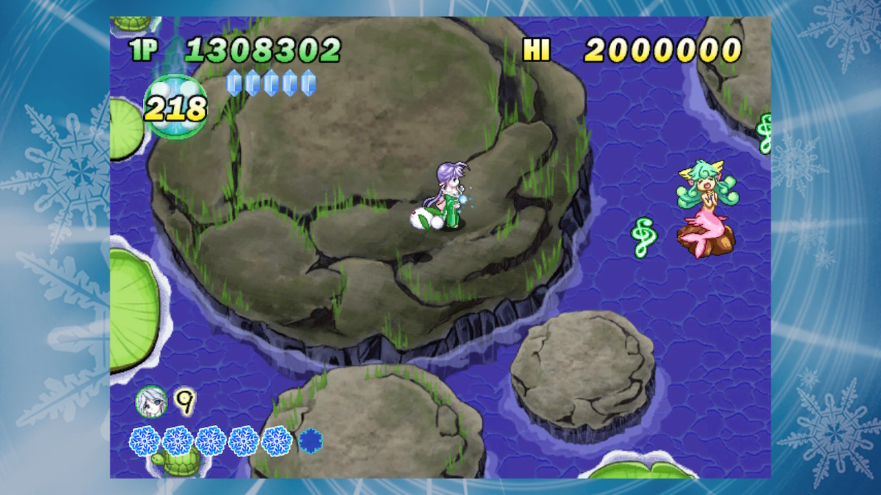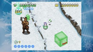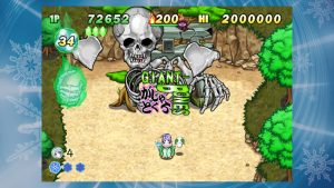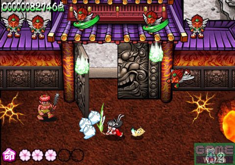 Heavenly Guardian tells the story of a snow goddess called Sayuki that has a crush on a boy from the local village. However, the boy has been recently afflicted with a curse that keeps him in a deep sleep, preventing Sayuki from getting to see him. Thus, she takes it upon herself to research the curse and discovers that it can be cured with a concoction made up of eight different ingredients, serving as all the reason she needs to embark on a dangerous journey. While there’s a glimmer of an interesting idea, namely in how snow goddesses are shunned by society and how Sayuki seeks to fight against that prejudice through her tragic romance, there ultimately isn’t much to the story and it suffers from a pretty shaky localization. What really sets it back is the fact that the game pulls a Ghosts ‘n Goblins and makes you complete the entire game twice to see the ending. Once you have the first cure, you learn that the boy wasn’t actually cursed, but was instead paralyzed, which requires a completely different cure! If you’re playing in co-op, the story is entirely different – Sayuki and her sister Koyuki are competing in the yearly snow goddess beauty contest to see which of the two is more beautiful, and to do that, the two must compete in a ghost destroying race that takes them through the same route as the single player story.