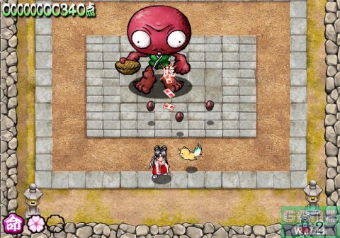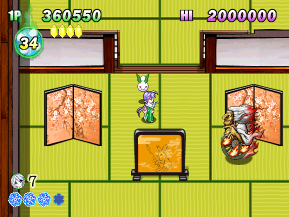Your standard projectile works the same as the ofuda in the previous games, but the other types of projectiles include a homing shot, a spread-shot, and bomb shots that explode upon contact. Coincidentally, these are the same power-ups as the ones unique to each character in Pocky& Rocky with Becky! You can upgrade your current weapon by grabbing colored crystals that match the weapon you’re using up to five times, which makes your weapon go from a pathetic peashooter to something that can actually do some damage. While upgrading is always an empowering thing in these kinds of games, it feels far too necessary to have any fun here. At the starting level, anything that isn’t the default rapid shot is either too slow or too weak, and even at max power, a lot of enemies can take a surprising amount of punishment. You can earn health extensions too, allowing you to take up to eight hits, but getting a game over will take these away from you, potentially putting you in a bad spot come late-game. Bosses are arguably the most interesting part of the game, including the likes of a mirror that creates Sayuki clones and a banshee that can reverse your controls, but none of them are particularly tricky and require dozens upon dozensin between repetitive patterns to defeat. Worse yet, a boss rush in the eighth level makes you fight every boss again, meaning that you encounter every boss except the last one four times before you see the ending!