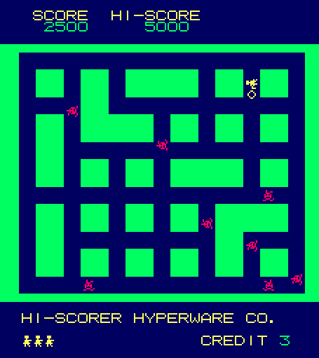 Heiankyo Alien is the first game in a long lineage of trap-’em-up games. The main goal of the game is to lure enemies into holes and bury them. A year later, Universal’s Space Panic and its many imitators would be approaching this same concept using a side-scrolling perspective. Broderbund would take a similar concept and create Lode Runner, a long-running series that has been ported to virtually every platform imaginable. While not as prolific as static shooters or maze games, a ragtag group of university students virtually created a genre overnight.
