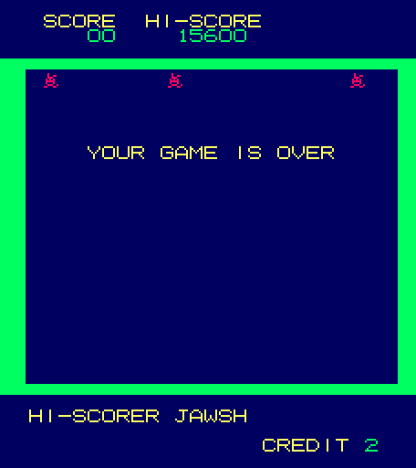 The game features nine rounds. With each successive round, there are more aliens on the screen and they move much faster. Strangely, after clearing all nine stages, the game restarts at the very first round, altering nothing. After out-maneuvering many faster aliens in the later levels, going back to the elementary opening portion feels like an enormous drop.