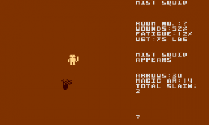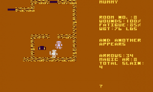 Level 7 is “The Vault of the Dead”, in which the key to the deepest ruins (Level 8) is hidden. The enemies here are zombies, mummies and other stock undead, the map is huge and designed to slowly wear you down in your search for the key. This is the original introduction of the dreaded attribute-eating monsters that also appear in the Temple of Apshai expansions (but they are much less of a pain than in Curse of Ra). Other foul obstacles are invisible specres and an abundance of hidden traps.