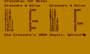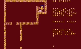 Very different to Apshai, where your objective was just to hoard more and more wealth and experience, the dunjons in Hellfire Warrior actually come with specific objectives, although the game doesn’t check their fulfillment. Just as before, all four dunjon levels are selectable from the beginning, it’s up to the player to restrain oneself to the ones “unlocked” by completing the previous challenge, or not. There’s still no other on-screen reward but the account of treasures, which the game now calculates into money for you. For some reason you have the option to disagree on the calculated value, but it just causes the game to reprompt the question indefinitely.