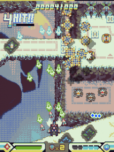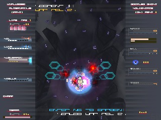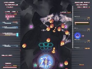 Unlike most other shoot-em-ups, where the selectable ships offer only slight variations of the same basic attributes, all characters in Hellsinker are very different from each other, offering a variety of playstyles suitable for all kinds of players, from newbies who play only for survival to score-attack-crazy veterans, with the only thing all characters have in common being the Suppression Field system, which slows down grazed enemy bullets and converts them into Luna Chips if the player stops shooting for a while. Even when not considering this huge variety in character choices, Hellsinker is a surprisingly meaty game for its genre, with tons of content waiting to be unlocked by its players. Besides the secret character Kagura and the usual level/boss practice and sound test modes, many more goodies are unlockable by reaching certain parts of the main campaign in only one credit, from alternate title screens and menu themes a la Mario Kart to alternate versions of the first three stages to a pair of ultra-hard extra stages which, when beaten, nicely wrap up the game’s storyline. And that’s not counting the huge number of crazy scoring tricks and hidden Life Chips each stage hides!