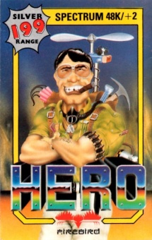 H.E.R.O. is the quest of Roderick Hero (no really, that’s his name as given in the manual) who descends into a mining shaft shaken up by volcanic activity to rescue the miners trapped within Mount Leone. But Roderick doesn’t go on his mission in any conventional way. With a propeller mounted to his backpack – after all, this is a Helicopter Emergency Rescue Operation – he takes to the skies (or at least above floor level in the underground caverns) to make his way through the destroyed tunnels.