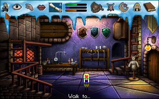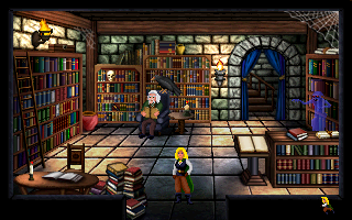 One interesting wrinkle in these class-specific quests (particularly for the rogue, who needs to elude guards while thieving), is the fact that all of the NPCs in the game have their own schedules. While Quest for Glory also did this, it was mostly limited to having the Burgomeister of Quest for Glory IV out by his window during the day and asleep at night. In Heroine’s Quest, NPCs are constantly wandering around the game’s three towns and interacting with other NPCs, with their respective dialogue changing depending on who’s present. There are also a number of optional side quests (including a thought-provoking one featuring a major character who is arguably holding his wife hostage) that can only be completed by observing NPCs in the wild. All of this adds substantially to Heroine’s Quest’s replay value and makes the world of Jarnvidr feel alive to a degree rarely seen in point and click adventure games.